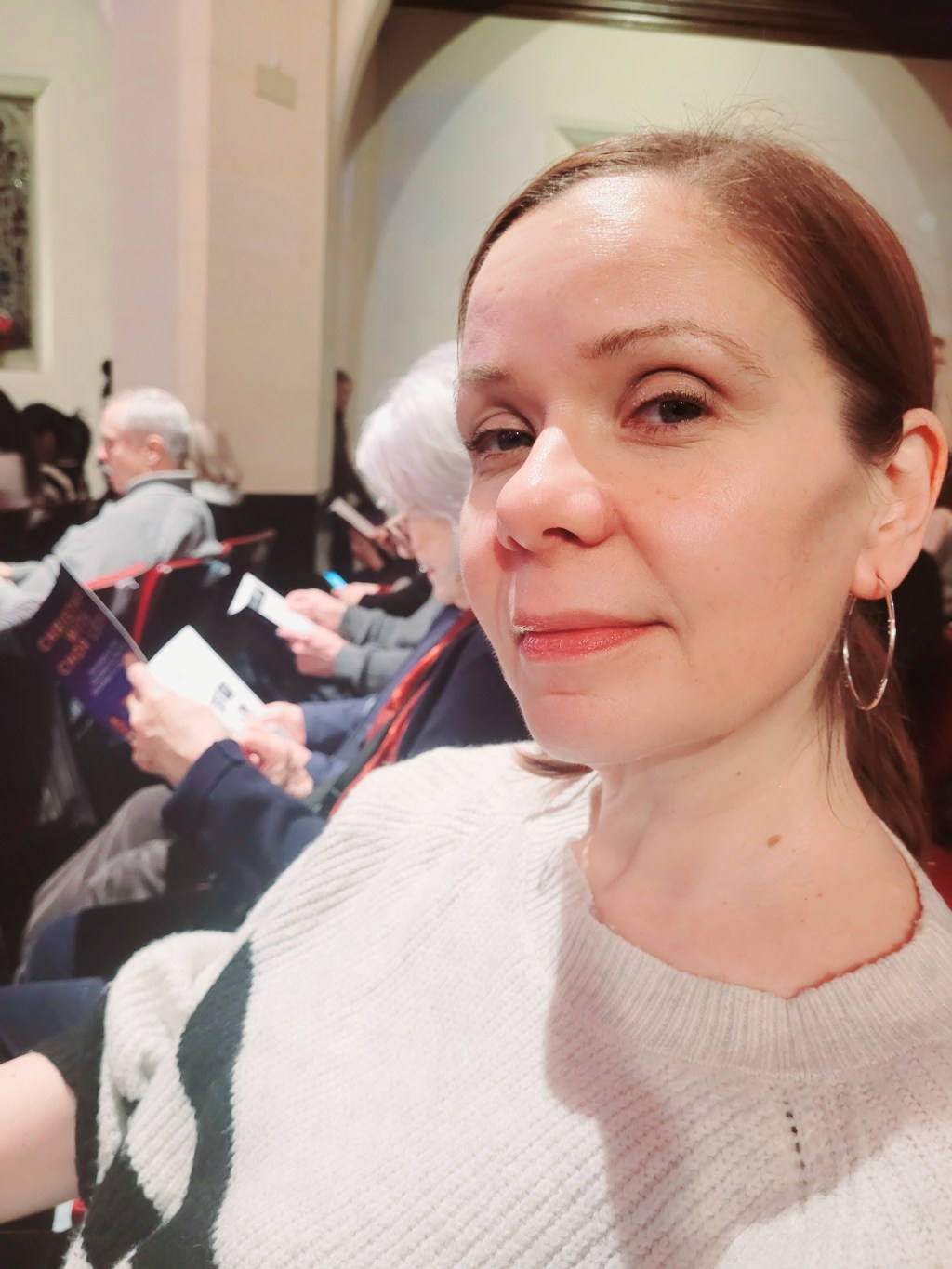 It was a stirring, beautiful, mesmerizing performance by something like seventy talented, passionate choir members, with arrangements I had never before imagined of songs both familiar and obscure, a violinist who made the hairs in my ears jump to attention, and a rendition of “Angels We Have Heard On High” that actually had tears streaming down my face rather quietly…but insistently enough that my mascara ended up leaving impressive patterns on my cheeks. Lo, it was a glorious performance.