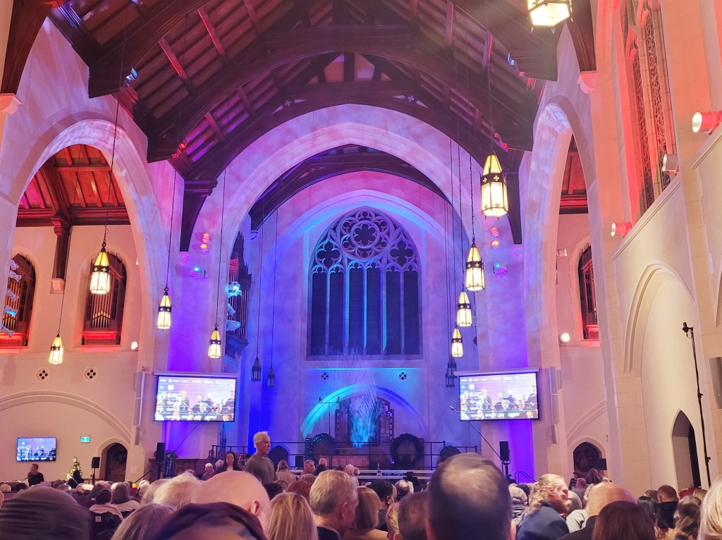 Today everyone seemed to be in a good mood despite the grey and soggy weather; even here in the notoriously grouchy West End. I received numerous birthday well-wishes from family and friends near and far, both in text and email format (I couldn’t care less about social media kudos, and don’t think I even indicated my birth date when I resurrected the dreaded Facebook last year….if I use it, I only use it for self-promotional purposes). Went to New Westminster to meet up with Charles, did a thrift-store run, had the best Mexican food in the Lower Mainland at Taqueria Playa Tropical, then we headed back downtown to immerse ourselves in a performance by Chor Leoni at St. Andrews-Wesley Church, just a few blocks from my apartment.