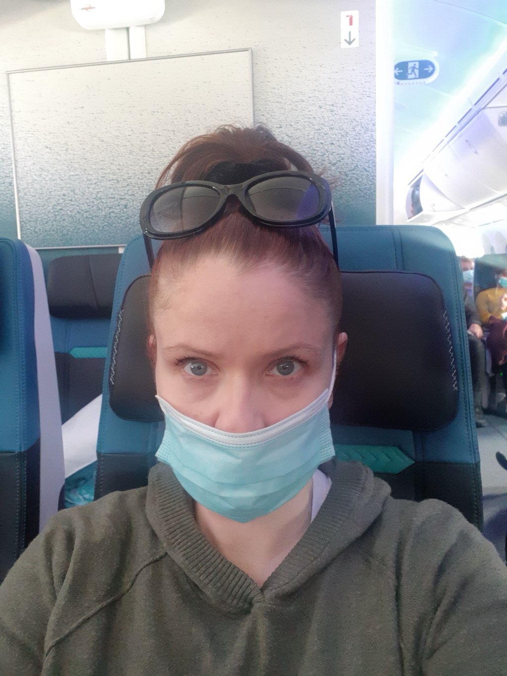 On a plane in 2022, where I could sit a couple of inches from someone in a sealed tube way up in the sky during a supposedly horror-movie-like sweeping pandemic. That flimsy, dirty mask would allegedly save my life, though.