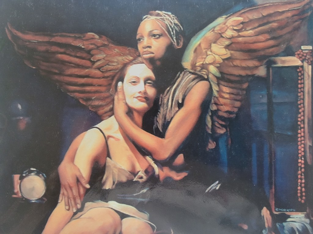 I soon learned that art was Victor’s lifeblood, his oxygen. He spent most of his days creating, drawing, painting, or learning and practicing digital art forms on his computer. He always had paint on his fingers or under his nails, he was always scrubbing his apartment due to endless drips and splatters and messes, and I was stunned when he led me to a big plastic shed on his rooftop balcony and opened it up to show me dozens of paintings. They were all labeled and dated, but simply stacked in there, finished and beautiful and breathtaking and hidden away. Here was this gifted man, working tirelessly all alone in his home studio, and then tucking the finished products into a compartment where nobody could see or admire them. He was, I could see, especially fond of painting angels.