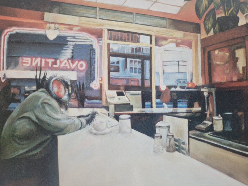 Victor agreed, and for the next week or so, we visited some of the galleries along Granville Street between 5th and Broadway to see the displays of Vancouver-based artists and what it would take to get him his own showing. We also spent a Saturday afternoon at the Artwalk in East Vancouver, admiring the crafts and presentations of local creatives. Victor soon handed me a thick book of his work, a physical portfolio of several of his paintings, which I have to this day; it’s how I’ve been able to include many of his works in this blog entry. He never asked for it back, not even when we had to end our friendship, but he had initially given it to me so I’d become more familiar with his output.